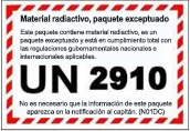 - Etiquetado y marcado: Debe mostrar "UN2910" en el exterior; No se requieren etiquetas de peligro.